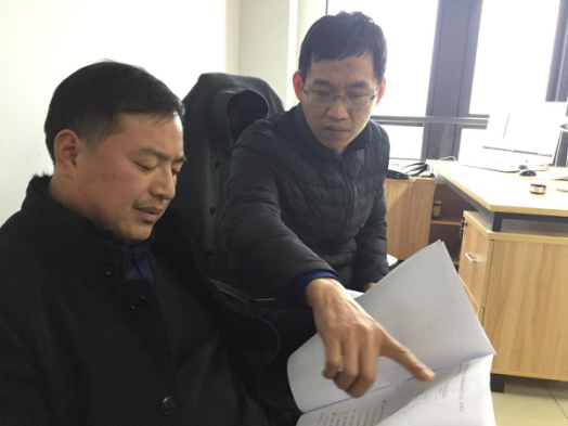圖為:公司總經(jīng)理胡海峰(左一)與華質卓越生產(chǎn)力促進(北京)有限公司合肥分公司總經(jīng)理陽建新商討《標準化管理辦法》。