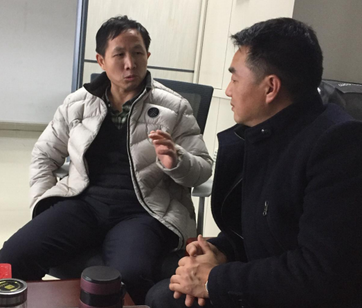圖為:公司辦公室主任方志義(右一)與華質卓越生產(chǎn)力促進(北京)有限公司合肥分公司潘工(左一)洽談。