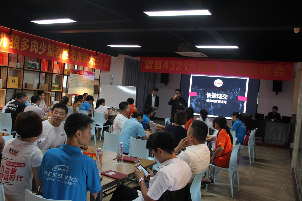 6月15日,由南通市魅力營銷策劃有限公司、歙縣“青創(chuàng)——眾創(chuàng)空間”共同組織的“歙縣4321大團隊打造培訓會”如期舉辦。來自歙縣多家建材家居品牌專賣店的負責人、營銷骨干共50多人共聚一堂,展開了為期兩天的營銷專題學習。