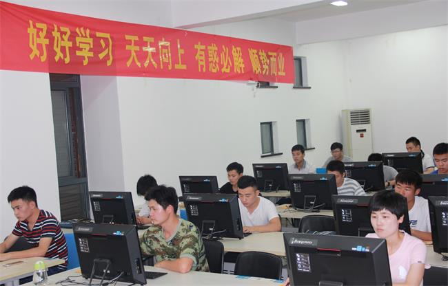 7月4日晚,歙縣青創(chuàng)職業(yè)學(xué)校電教室內(nèi)燈光明亮,參加全縣退役士兵職業(yè)技能培訓(xùn)班的小伙子們精神抖擻、興致盎然,“好好學(xué)習(xí) 天天向上 有惑必解 順勢而業(yè)”的大紅標語也格外醒目。學(xué)員們在白天理論教學(xué)的基礎(chǔ)上,利用晚上進行上機實際操作,鞏固提升所學(xué)知識,相得益彰???,他們學(xué)得多認真??!