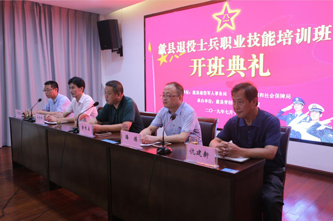 7月19日,歙縣2019年度第二期退役士兵職業(yè)技能培訓期班開班儀式在我青創(chuàng)職業(yè)培訓學校隆重舉行??h退役軍人事務局局長金自立、副局長潘煉、張青峰等領導,青創(chuàng)職業(yè)培訓學校、康順駕校負責人出席開班儀式并發(fā)表講話。