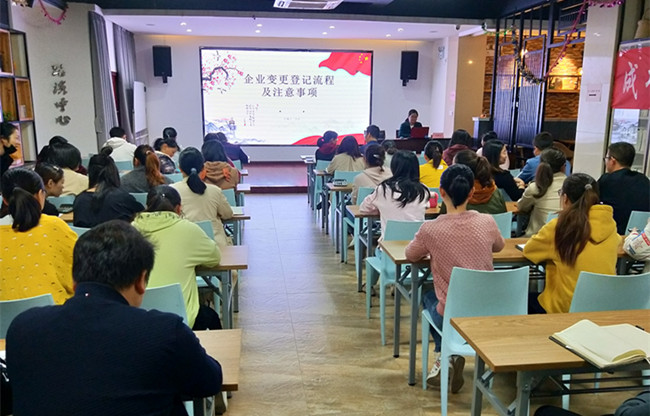 10月23日,由受理中心汪蕓主講的“企業(yè)變更登記流程及注意事項(xiàng)”專(zhuān)題PPT分享在一樓眾創(chuàng)空間舉行,園區(qū)企業(yè)負(fù)責(zé)人和中心財(cái)稅服務(wù)人員40余人參與此次分享。