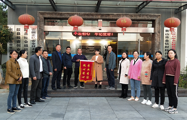2019年10月28日,休寧縣五五零五農(nóng)業(yè)科技有限公司總經(jīng)理陳旭輝帶著“專業(yè)專注、放心省心”標(biāo)語的錦旗來到我金信財(cái)稅公司,對(duì)我公司為其指導(dǎo)財(cái)稅管理、建立賬務(wù)的保姆式服務(wù)及服務(wù)會(huì)計(jì)楊鳳琴表示感激之情。當(dāng)日,總經(jīng)理胡海鋒,副總經(jīng)理汪銘及相關(guān)部門負(fù)責(zé)人一同接受錦旗。
