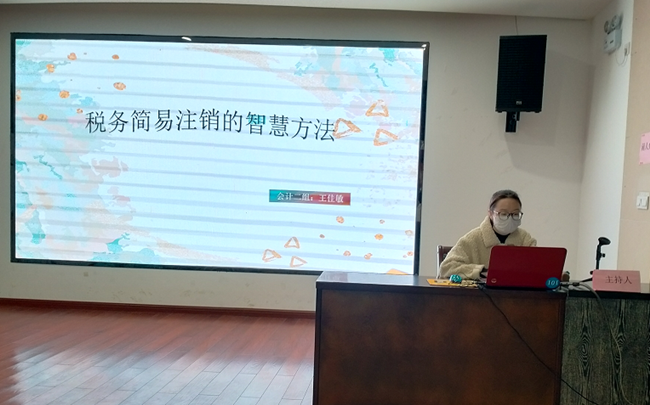 王佳敏會計從事具體業(yè)務時間不長,但她學習努力、備課認真,她結(jié)合日常服務累積的經(jīng)驗和所學的財稅知識,向大家詳細講解了企業(yè)稅務簡易注銷需符合的條件、并以具體案例演示了辦理簡易注銷的操作流程。經(jīng)過王佳敏的講解,參與分享的人員對“簡易注銷”有了更深入、全面的認識,有助于更好的為企業(yè)做好服務。最后,中心副主任汪銘進行了點評,他鼓勵年輕員工放開膽子去嘗試、不斷總結(jié)求提高,借助PPT的形式與他人分享收獲,探討問題,促進團隊和個人更好成長和更快提升!