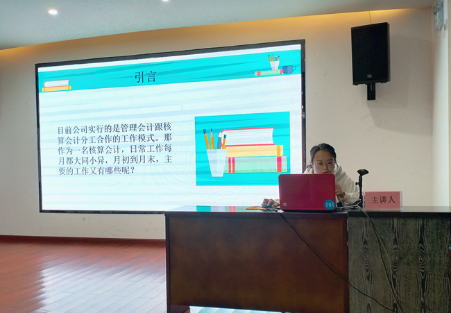 吳瑩瑩會計工作認(rèn)真、鉆研業(yè)務(wù),她結(jié)合自己日常的核算工作中積累的經(jīng)驗,從抄稅報稅、票據(jù)審核、發(fā)票認(rèn)證、發(fā)票開具、納稅申報等幾個方面分別向大家講解了需要注意的事項,并將自己所學(xué)到的工作技巧和簡便方法一同分享給參與人員。經(jīng)過吳瑩瑩的講解,參與分享的人員對“核算會計”的日常工作事項有了更深入、全面的認(rèn)識,有助于更好的為企業(yè)做好服務(wù)。