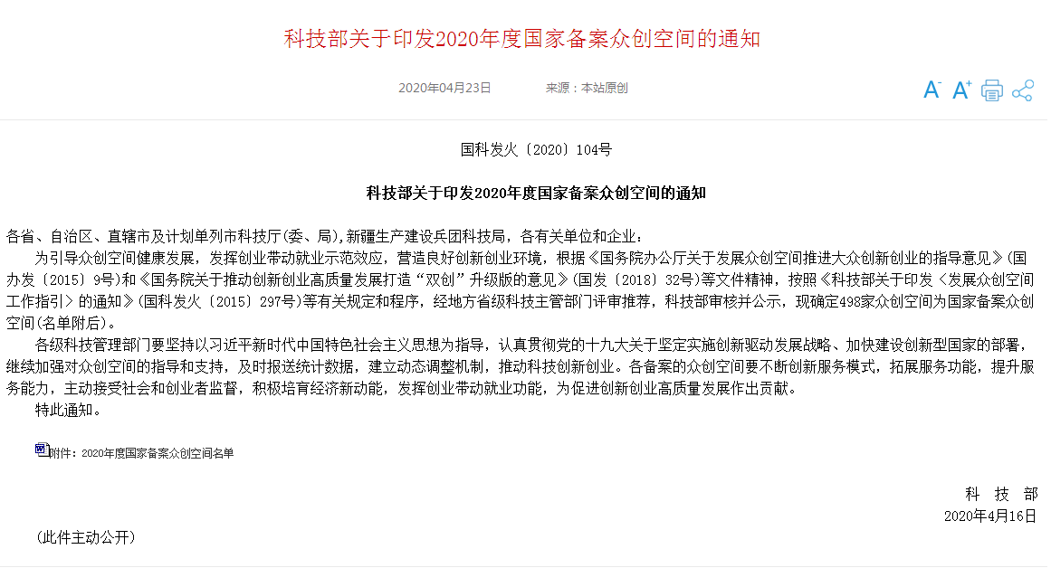 近日,國(guó)家科技部發(fā)文,印發(fā)2020年度國(guó)家眾創(chuàng)空間的通知,安徽省12家眾創(chuàng)空間上榜,歙縣青創(chuàng)——眾創(chuàng)空間成為全市首家民營(yíng)眾創(chuàng)空間獲此殊榮。