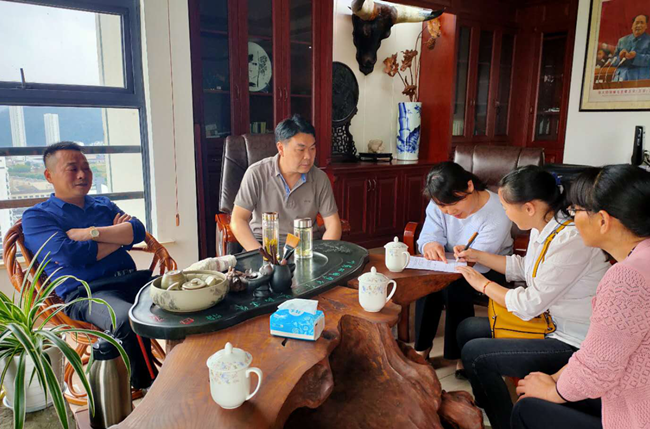 (上圖為走訪小組仔細聆聽昱聯(lián)爆破公司提出的意見和建議。)