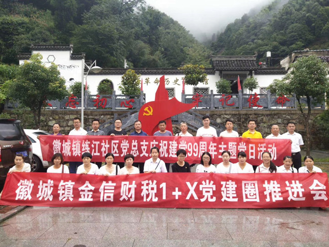2020年7月3日,在中國共產(chǎn)黨成立99周年之際,我金信財稅黨支部1+X黨建圈與練江社區(qū)黨總支20余名黨員和建黨對象、積極分子等,冒雨走進(jìn)歙縣上豐鄉(xiāng)巖源村革命老區(qū),聯(lián)合開展“走進(jìn)紅色巖源 重溫革命歷史”主題黨日活動。
