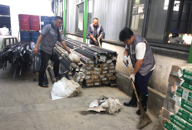 (圖為招商中心、金信財(cái)稅員工參加開發(fā)區(qū)金翠谷公司車間打掃。)