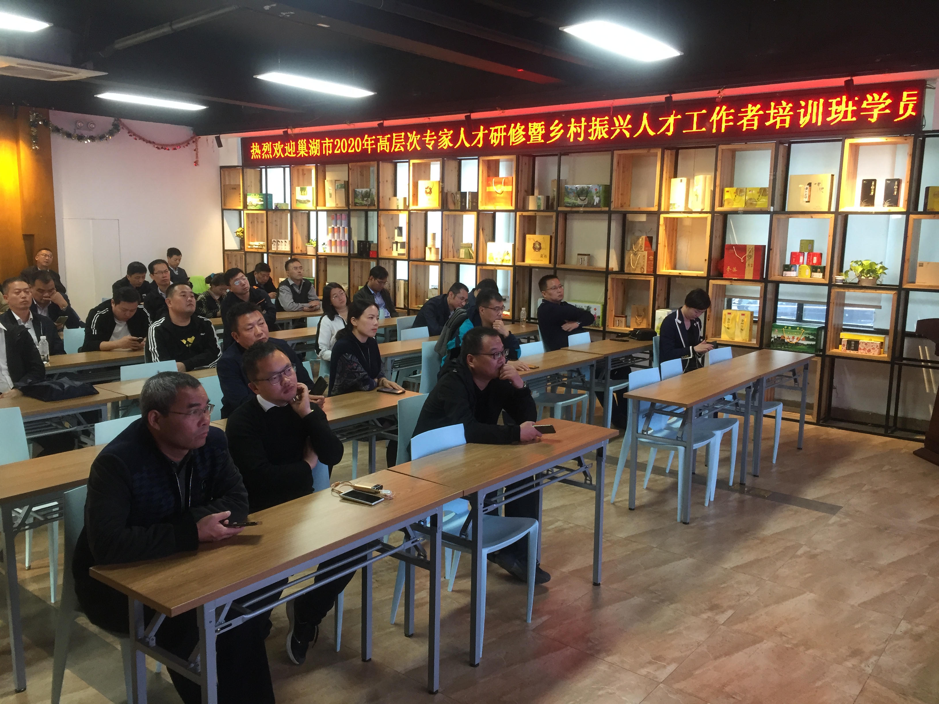2020年11月3日,巢湖市2020年高層次專家人才研修暨鄉(xiāng)村振興人才工作者培訓(xùn)班學(xué)員40余人,在歙縣縣委黨校、縣人才辦領(lǐng)導(dǎo)的陪同下,來我中心——國家備案眾創(chuàng)空間孵化基地參觀交流。