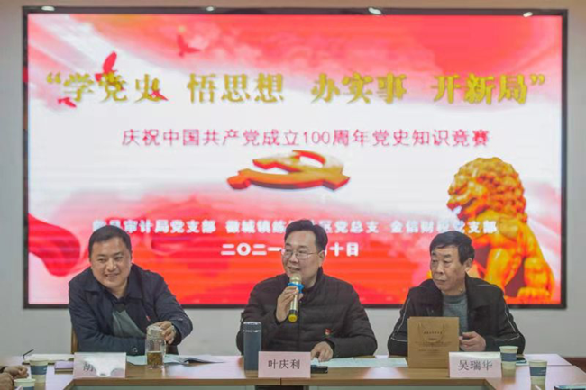 2021年3月10日,徽城鎮(zhèn)金信財(cái)稅1+X黨建共建圈為紀(jì)念中國(guó)共產(chǎn)黨成立100周年,與歙縣審計(jì)局黨支部、練江社區(qū)黨總支、玲玲物業(yè)黨支部、樂(lè)億教育黨支部、昌仁醫(yī)院黨支部、天正達(dá)財(cái)稅黨支部、振超彩印黨支部聯(lián)合開(kāi)展“學(xué)黨史 悟思想 辦實(shí)事 開(kāi)新局 ”黨史知識(shí)競(jìng)賽活動(dòng)。各支部40余名黨員和發(fā)展對(duì)象、積極分子參與本次活動(dòng)?;顒?dòng)由歙縣審計(jì)局黨支部葉慶利同志主持。