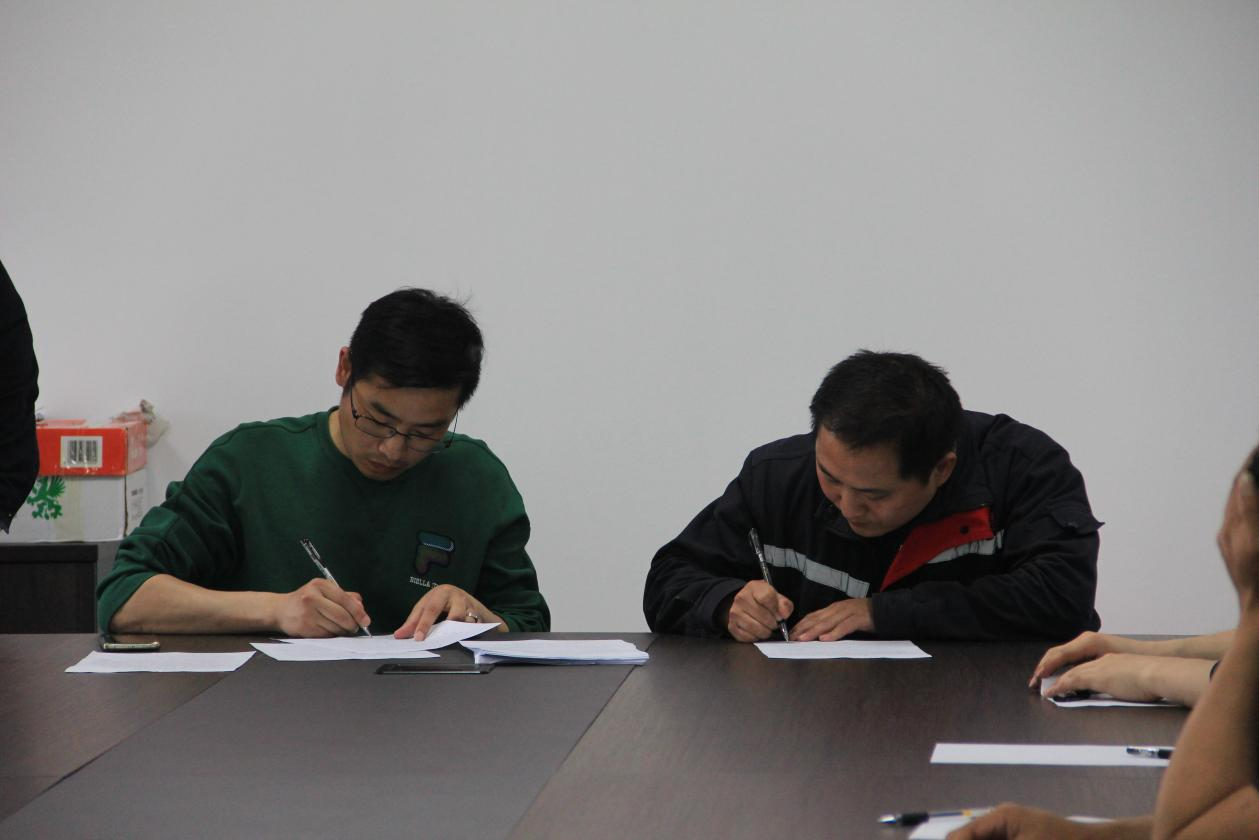 (上圖為公司總經(jīng)理吳經(jīng)錢與職工簽訂《安全生產(chǎn)責(zé)任書》。)