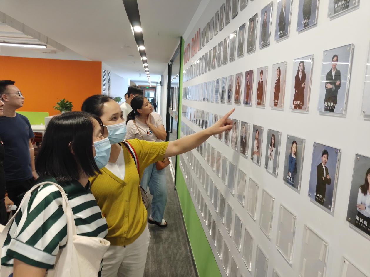 在肖衛(wèi)波商務(wù)總監(jiān)的帶領(lǐng)下,體悟小組一行參觀了果然集團(tuán)整齊美觀的公司文化墻、員工風(fēng)采展示區(qū)、辦公區(qū)、客戶交流區(qū)等功能板塊,其以客戶為中心,新潮、前衛(wèi)的設(shè)計(jì)理念,貼心、實(shí)用的設(shè)計(jì)效果給體悟小組留下深刻印象。