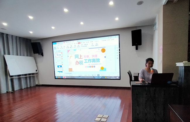 2021年10月9日,由歙縣招商投資服務(wù)中心舉辦,黃山市金信財稅代理事務(wù)所有限公司承辦,金信公司經(jīng)濟(jì)業(yè)務(wù)部(受理中心)技術(shù)人員王巧玲主講的“高效辦理網(wǎng)上稅務(wù)事項”專題PPT分享在一樓眾創(chuàng)空間舉行,園區(qū)企業(yè)負(fù)責(zé)人和中心財稅服務(wù)人員50余人參與此次分享。