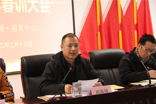 為總結(jié)回顧2021年工作成效,謀劃和布局2022年各項工作,明確目標(biāo),細化措施,2月19日,招商中心、金信財稅2022春訓(xùn)大會在中心駐地順利舉行。公司全體員工60人參加會議,招商中心主任、金信財稅總經(jīng)理胡海鋒主持會議。