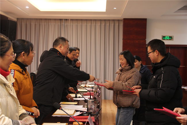 (上圖為中心領(lǐng)導(dǎo)為2021年度優(yōu)秀班組、個人頒獎。)