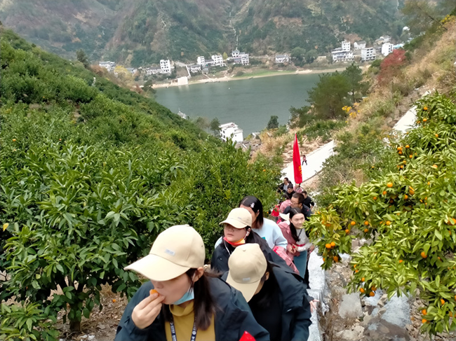 隨后團隊返回我縣新溪口,品嘗農(nóng)家樂,沿著登山步道欣賞新安江畔的桔園秋色,品嘗最新鮮的蜜桔酸甜味道??吹酱T果累累的圖景,也讓我們不禁想到桔農(nóng)養(yǎng)護、灌溉的辛苦,艱辛的付出才換來如今的收獲。
