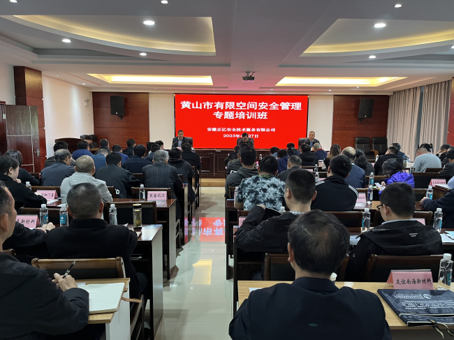 2023年4月27日,全市工貿(mào)行業(yè)(有限空間作業(yè))安全管理專題培訓(xùn)班順利開班。本次培訓(xùn)由安徽正億安全技術(shù)服務(wù)有限公司承辦,全市工貿(mào)行業(yè)涉及有限空間作業(yè)的企業(yè)近80家共110名學(xué)員參加。黃山市應(yīng)急管理局副局長吳永杰出席開班儀式并做重要講話,歙縣應(yīng)急局張衛(wèi)國局長主持會議。屯溪區(qū)、徽州區(qū)、祁門縣、黟縣、市高新區(qū)等區(qū)縣應(yīng)急管理局領(lǐng)導(dǎo)專程帶隊參加培訓(xùn)。