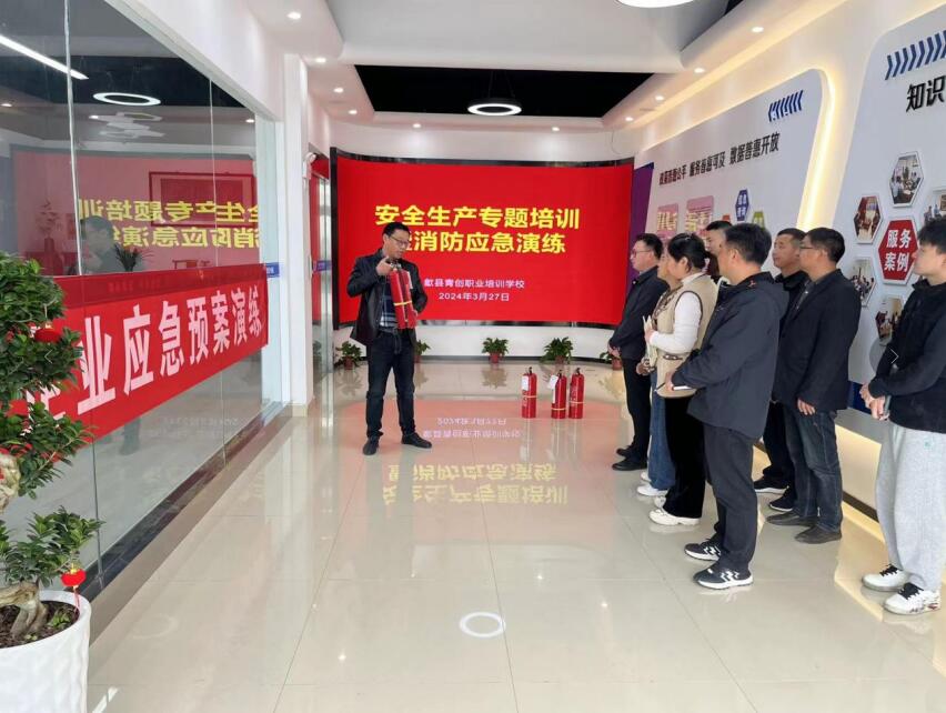 2024年3月27日,歙縣青創(chuàng)職業(yè)培訓(xùn)學(xué)校在校內(nèi)組織了一場(chǎng)關(guān)于安全消防知識(shí)的專題培訓(xùn),全體學(xué)校職工均參與了此次活動(dòng)。