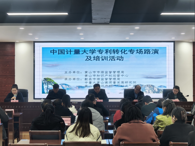 11月29日,中國計(jì)量大學(xué)專利轉(zhuǎn)化專場路演及培訓(xùn)活動在黃山市知識產(chǎn)權(quán)“一站式”服務(wù)工作站(安徽香寧眾創(chuàng)科技服務(wù)有限公司)舉辦。黃山市市場監(jiān)督管理局(知識產(chǎn)權(quán)局)黨組成員、副局長黃劍,黃山市市場監(jiān)管局黨組成員、副局長張妮,歙縣市場監(jiān)督管理局黨組書記、局長江志偉以及全市知識產(chǎn)權(quán)行政管理人員和相關(guān)企業(yè)參加活動。