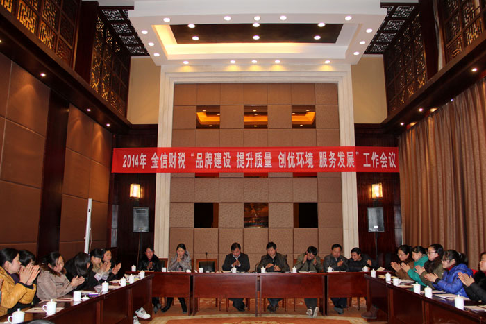 2014年是金信財稅的“品牌建設(shè)年”,為推進(jìn)、實施這項長期、艱巨的工作目標(biāo),公司于2月15日在歙縣飯店一樓舉行了會議,會議除了公司的33名員工外,還特別邀請了經(jīng)信委的洪亮、汪錦峰副主任參加了會議。