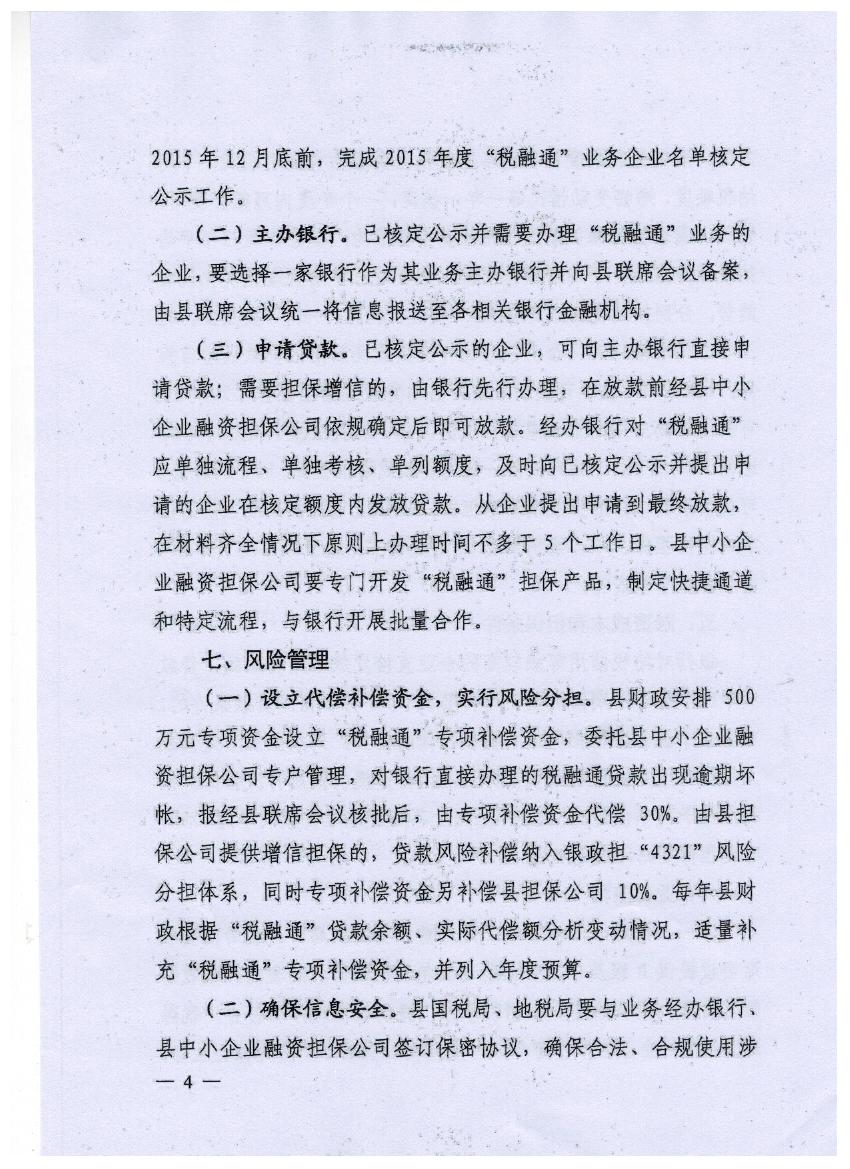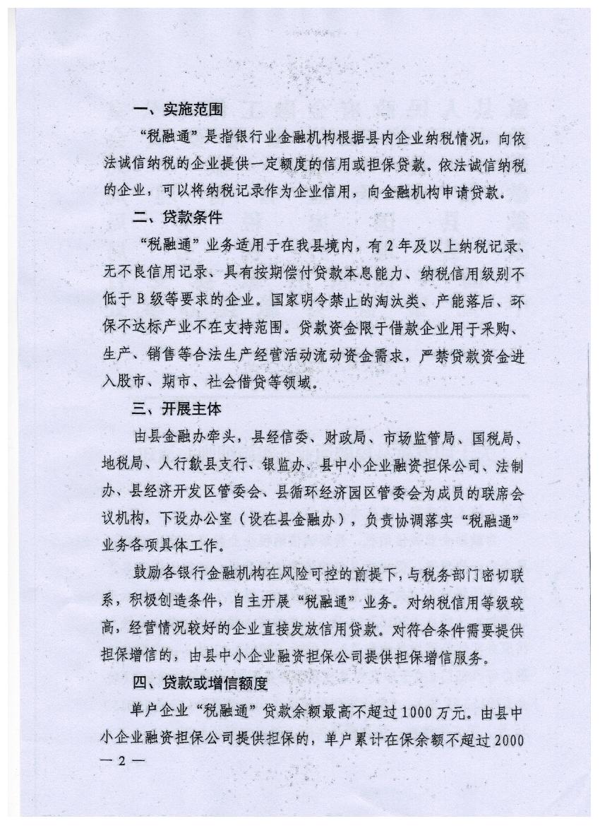 關(guān)于印發(fā)歙縣稅融通業(yè)務(wù)實施細則的通知